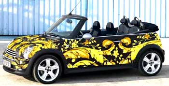 Базой для тюнинга послужил серийный Mini-кабриолет черного цвета, оснащенный 1.6-литровым двигателем мощностью 115 лошадиных сил. Работа дизайнера свелась к замысловатой росписи кузова золотыми узорами растительного характера.