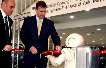 Необычной церемонией удивили хозяева гостей, приглашенных на открытие нового дилерского центра компании Honda в Великобритании. Когда принц Эндрю, герцог Йоркский, направился с ножницами к традиционной красной ленточке, ему ассистировал – без какой-либо поддержки со стороны инженеров, робот-гуманоид ASIMO.