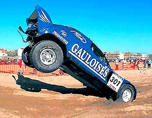 | • | "Дакар" постоянно преподносит сюрпризы гонщикам. Для Шлессера столбик посреди пустыни - уже не первый "подарок" |