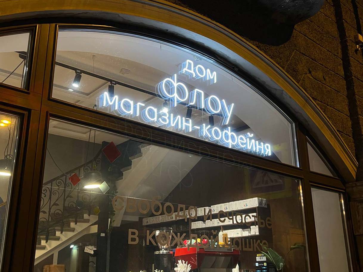 Альтернатива газоразрядным лампам — вывески из гибкого неона. Гибкий неон — это светодиодная лента, которая находится внутри шнура из силикона. Шнур обеспечивает рассеивание света и защиту светодиодов от загрязнения и механических повреждений. Гибкий неон очень недорог, работать с ним сравнительно несложно. Его наклеивают на подложку из акрила или другого материала, потом соединяют отдельные фрагменты проводами, подключают блок питания, и неоновая вывеска готова.