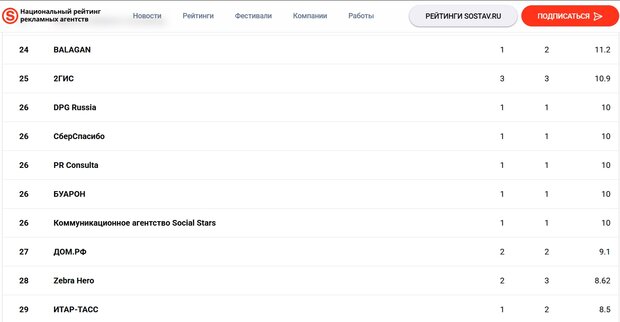 Методология Национального рейтинга, разработанная Sostav при участии АКАР, заслуживает отдельного внимания, поскольку она переворачивает привычную логику оценки. Если традиционные рэнкинги измеряют вес агентств в деньгах, где безоговорочными лидерами выступают гиганты вроде «СберМаркетинга» с биллингами, исчисляющимися десятками миллиардов рублей, то НРА измеряет их силу в креативности. Баллы здесь присуждаются не за оборот, а за победы и призовые места на ключевых отраслевых фестивалях: «Большая рыба», Silver Mercury, Red Apple, White Square и других. Каждая награда проходит калибровку по весу, а данные верифицируются исключительно по официальным источникам, что гарантирует максимальную объективность и прозрачность результатов. Абсолютное лидерство в рейтинге в этом году захватил Т-Банк, чья стратегия системной работы с креативом принесла 40 наград за 17 проектов, что в сумме составило впечатляющие 283,2 балла. Этот отрыв от преследователей демонстрирует высокий порог входа в топ. В десятку сильнейших также вошли такие признанные игроки, как G Communications, девелопер «Брусника», корпорация СИБУР, агентство «Полилог». На восьмом месте расположился «СберМаркетинг»: будучи крупнейшим закупщиком медиа, в рейтинге интеллектуального продукта он набрал 31,2 балла, что подчеркивает разницу между финансовой мощью и качеством креативного портфолио. Высокая конкуренция пронизывает все уровни рейтинга. Особенно показательной выглядит ситуация на 14-й строчке, где сразу семь участников, включая «АГТ», «Аэродинамику» и Школу коммуникаций НИУ ВШЭ, сошлись с одинаковым результатом в 21 балл. На этом фоне 26-е место, которое Social Stars делит с DPG Russia, «СберСпасибо», PR Consulta и «БУАРОН», становится не просто строчкой в таблице, а мощным смысловым кейсом. Всех этих участников объединяет общая деталь: их позиции в рейтинге обеспечила одна-единственная работа, получившая высокое признание профессионального сообщества и принесшая каждой компании по 10 баллов. Однако если для большинства коллег по списку это результат многолетней накопленной репутации, то для Social Stars это попадание стало наглядным подтверждением выбранной философии. Агентство сознательно отказалось от гонки за количеством проектов, сконцентрировав ресурсы на точечной глубинной проработке одного кейса, который в итоге оказался весомее десятков рядовых кампаний.