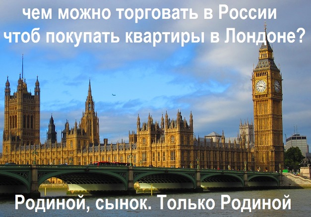 Это не продажа Родины, а покупка новой родины. Вот скоро наши власть имущие скупят все дворцы в Лондоне и переедут туда всем кагалом - дума, правительство и вся административная рать. Но это будет не правительство в изгнании, а партизанское правительство. Будут разлагать врага изнутри. Захотят вдруг пиндосы шарахнуть ядерной дубинкой или ещё чем всю власть россейскую и облом, а она в Лондоне. Не бить же по своим и по Москве смысла нет бить. И тоды всем разрешат в Москве где угодно и сколько угодно митинговать. Стратегия называется, а вы коррупция, воровство.