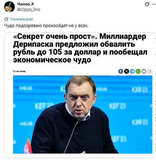 Обвалить самого Дерипаску (и ему подобных), и тогда точно случится экономическое чудо.