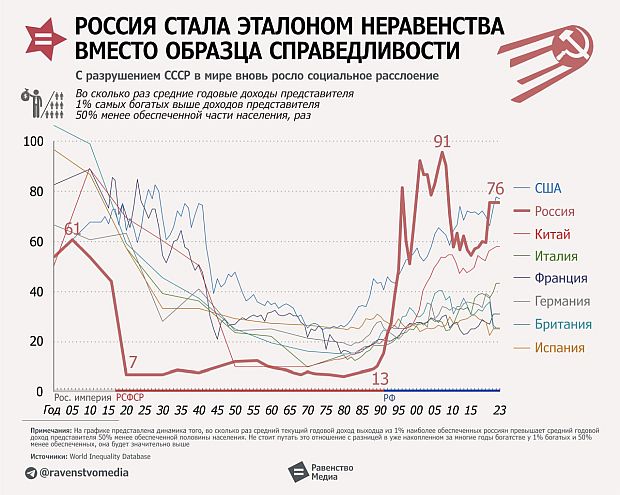 До многих еще не дошло очевидное:декларативный "образец справедливости" стал эталоном несправедливости не случайно, а закономерно.А "светлое будущее", обещанное и построенное большевиками - стало Настоящим. Оставьте фантазии и иллюзии - другого не будет.