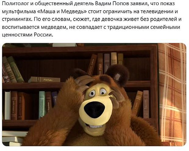 Вадим Попов английским шпионом? Потому что запретить Машу и Медведя хотели англичане. Как мягкую силу России.