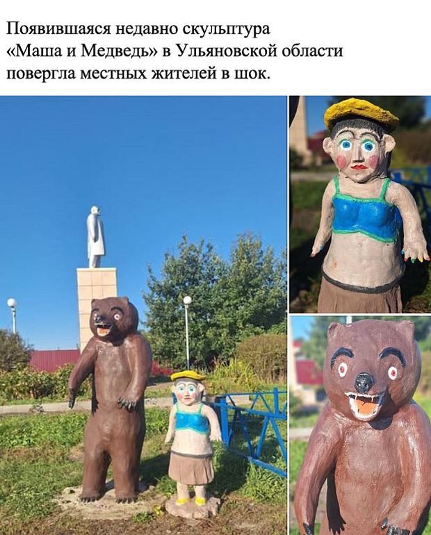 Самопальное творчество. Хобби. Ни о каком госзаказе и финансировании и речи не идёт. У империалистов к хэллоуину тоже подобное мастерят, и с куда большим размахом. Идёшь по улице, видишь паука, размером с двухэтажный дом. Рейки, обмотали пузырчатой плёнкой, а сверху широкой чёрной изолентой. Добавили моргающие гибкие LED и светящиеся наклейки, на корпусе пара вентиляторов раздувающих нарезанные полосы- эффект движения. Ночью неожиданно наткнешся- впечатление схватишь запоминающееся. И никто никому политику не шьёт. И с официальными истуканами не сравнивает. P.S. Медведь, кстати, вполне зачетный.