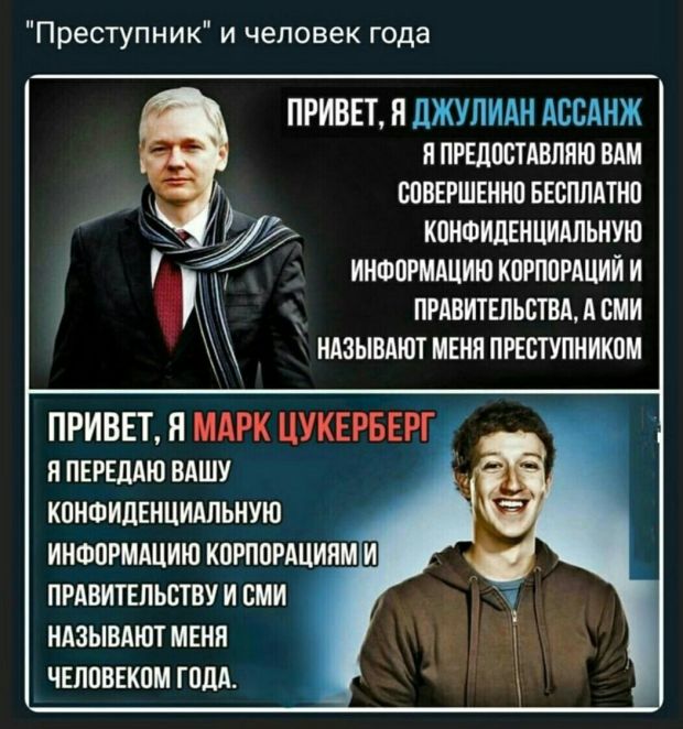 В коммунистическом Китае соцсети тоже предоставляют властям всю информацию. А такие, как Асандж, в Китае гниют в тюрьме.