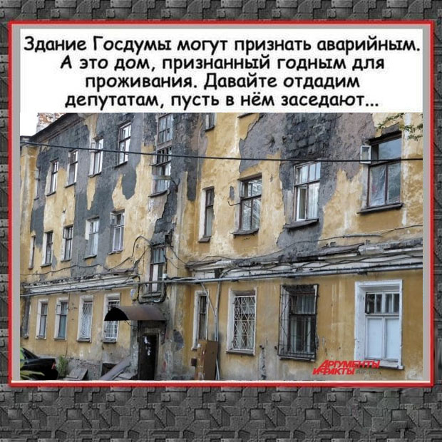 Не надо заставлять наших народных депутатов, они сами переедут в это ветхое здание и снизят себе зарплату до средней по стране.