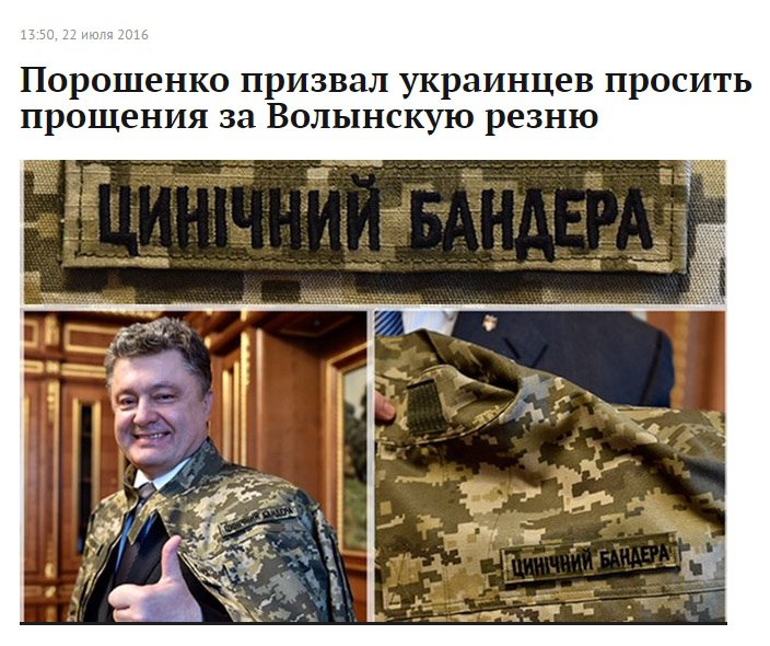 Это пусть бандерложьи наследники и их подпевалы из "идобандеровцев"-вальцманов, оккупировавшие с помощью Фашингтона украйну, просят прощения у потомков зверски закатованых польских селян за резню-не нужно призывать к этому остальное большинство жителей "территории 404", мы и сами страдаем от антинародного бандеровского апартеида-залитый кровью мирных сограждан Донбасс тому ярчайшим свидетельством!