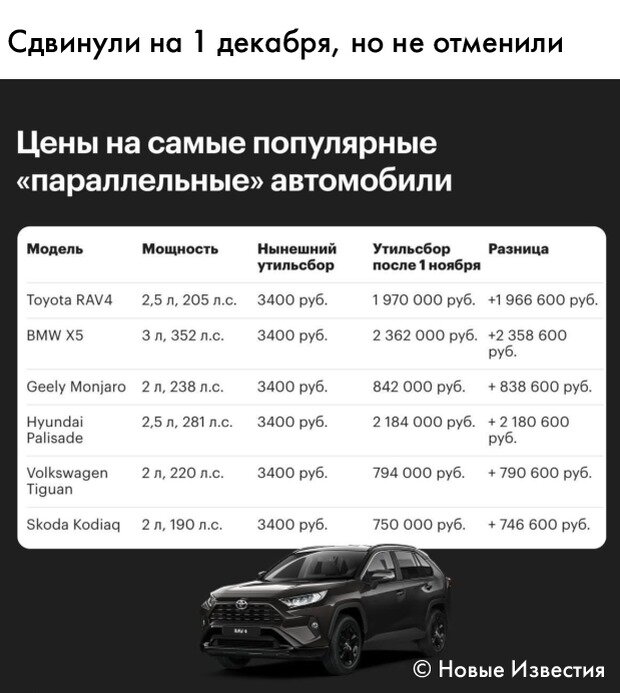 Посмотрел «примеры роста утильсбора». Красота ! Вырос на сотни процентов.