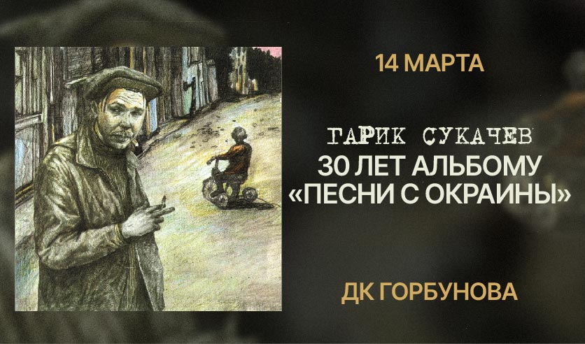 Повод для своего выступления Гарик Сукачев назвал странным, а внушительному юбилею пластинки подивился. Тем не менее, в самом начале действа певец пообещал публике сыграть сегодня не имеющий аналогов концерт. Попутно он объяснил, что представит сегодня не только материал "Песен с окраины", но и более поздние композиции, которые он вряд ли бы написал, не будь этого альбома. Также Гарик Сукачев напомнил, что, в свою очередь, "Песни с окраины" вышли из его совместного проекта с Александром Ф. Скляром "Боцман и Бродяга", дань которому была отдана в той же "Горбушке" в конце апреля прошлого года.
