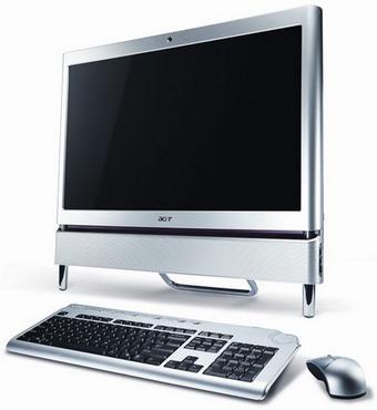 Следуя глобальным тенденциям рынка компьютерной электроники, компания Acer подготовила свой релиз настольной all-in-one или «все в одном» системы. Сегодня была представлена модель Aspire Z5610. Устройство представляет собой компьютер без системного блока — комплектующие спрятаны в корпусе дисплея. Симпатичный десктоп оснащен специальной святящейся полоской между экраном и стереосистемой, она создает дополнительную подсветку клавиатуры. 23-дюмовый LCD-экран имеет разрешение 1920x1080 пикселей. В качестве центрального процессора используется Pentium E5300, тактовой частотой 2.60 ГГц. Объем оперативной памяти находится на уровне 4 Гб, а емкость винчестера составляет 320Гб.