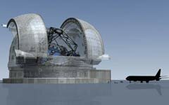 Телескоп E-ELT станет самым большим оптическим телескопом в истории. Его зеркало диаметром 42 метра (диаметр зеркала самых больших современных телескопов составляет 10 метров) будет состоять из почти тысячи шестиугольных сегментов размером 1,4 метра.