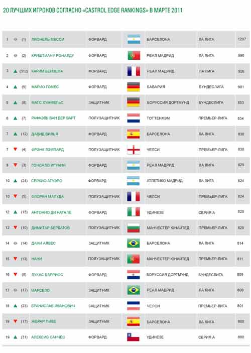 Карим прекрасно провёл в составе «Реала» все мартовские матчи, благодаря чему поднялся в рейтинге Castrol EDGE Rankings разом на 312 строчек и теперь расположился на третье строчке рейтинга, сразу за Лионелем Месси и Криштиану Роналду. Аналитики Castrol подготовили подборку статистических фактов, объясняющих невероятный взлёт Бенземы и перемещения других футболистов в рейтинге.