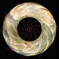 Это устройство могло напоминать современный проигрыватель – перо, подвешенное над вращающимся столиком. Чтобы проверить эту догадку, он построил увеличенную рабочую модель. Он установил скользящую горизонтальную перекладину над диском старого проигрывателя для виниловых дисков. Когда перекладина и диск проигрывателя движутся в унисон, острая вертикальная игла, прикрепленная к перекладине, рисует точные спирали. Люй полагает, что древнее кольцо было выточено аналогичным образом.