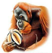 | • | Орангутанг выковыривает палочкой семена из тропического плода |