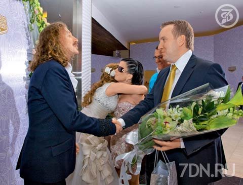 Кстати, орхидею для украшения прически Юля купила сама. «Стилист сказал — выбирай самые мелкие цветки. Вот я, к удивлению продавщиц, и искала орхидею с самыми мелкими цветочками... А когда я обсуждала с флористом дизайн букета, у меня в голове все время звучала песня Игоря «Свадебные цветы». Это одна из самых любимых моих мелодий. Сегодня ее в нашу честь обещала спеть сама Ирина Аллегрова — да разве я могла когда-то мечтать об этом?!» — счастливо улыбается Юля. Над макияжем и прической невесты работали три часа. Облачиться в платье Юле помогала мама, прибывшая накануне из Екатеринбурга, — с громадной юбкой девушке в одиночку было не справиться. «Когда месяц назад дочка позвонила и сказала, что выходит замуж, мы с мужем были в Испании — у нас там небольшая квартира у моря, — рассказывала Людмила Ивановна, собирая дочку «под венец». — Мы немножко растерялись, хотя, конечно, все к этому шло. После того как Игорь с Юлей начали жить вместе, будущий зять сразу захотел познакомиться с нами: сначала в Москву поехал муж, потом я, потом мы вдвоем. Вскоре Игорь пригласил нас с мужем к себе в Майами. Мы уже дважды все вместе отмечали дни рождения Юлечки: в прошлом году в Америке, а в этом — в Испании. Наблюдая, как, приезжая к нам в Екатеринбург, Юлечка уже через два дня начинает тосковать по Игорю, я понимала: их роман — это серьезно. Мы с мужем через год отметим тридцатилетие собственной свадьбы, надеюсь, мы подали дочке хороший пример и у нее тоже будет единственный и счастливый брак… Кстати, когда наша большая компания ехала в поезде из Екатеринбурга в Москву (кроме членов семьи Юля пригласила на свадьбу несколько подружек. — Прим. ред.), на мой телефон пришло СМС: «Мама и папа, мы с Игорем только что стали мужем и женой. Я счастлива!» Все три наших купе закричали: «Ура!» И мы открыли бутылку шампанского, которую прихватили с собой».