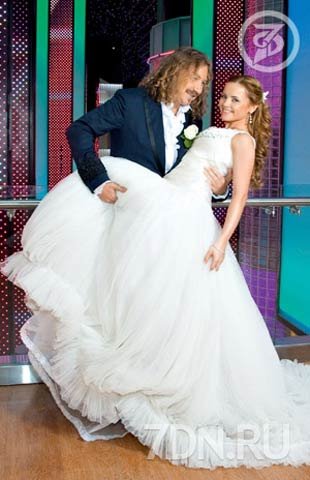 Уже под утро в зал внесли праздничный торт — он тоже задержался в пробках. Чудо кулинарного искусства было украшено марципановыми свадебными кольцами, розами из белого шоколада и надписью «Одна надежда на любовь» (этот слоган, кстати, был и на приглашениях, и на специально созданных обоях, которыми обклеивали стены в зале). «Резать надо по правилам: берете нож оба и смотрите, чья рука окажется сверху — тот и будет хозяином в семье», — наставлял молодых тамада. «Хватит правил, — смеялся Николаев. — У меня по ним резать не получается — посмотри, какой высокий торт». «Как хочешь, так и режь», — смилостивился Малахов… Из ресторана новобрачные уехали в шестом часу утра. А перед этим им пришлось подождать, пока погрузят подарки в машины. Для цветов места уже не хватило, и пришлось вызвать несколько такси, чтобы погрузить букеты. «День сегодня был суматошный и счастливый, да вы сами все видели, — говорил Игорь, прощаясь с корреспондентами «7Д». — А вот свадебного путешествия как такового у нас не будет. Уезжаем на гастроли в Америку. Юля тоже будет принимать в них участие — мы вместе поем песню «Одна надежда на любовь». Теперь, объявляя Юлю в концертах, я с полным правом могу назвать ее женой. Только сейчас до конца осознаю — как это приятно…»