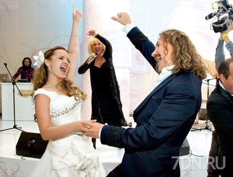 Наконец, настало время и для танцев. И конечно, на свадьбе музыканта было кому сыграть и спеть. Алла Борисовна вспомнила бурную молодость, спев с участниками группы «Рецитал». На сцену вышли неудержимые «советские рокеры» во главе с бывшим мужем Примадонны Евгением Болдиным. Неожиданный джем-сейшен устроил и Леонид Агутин. Он явно скучал без супруги (Анжелика после своего концерта в конце концов добралась до свадьбы, но с большим опозданием). Поэтому, услышав знаменитые хиты датского певца Томаса Н’эвергрина, Агутин вышел на сцену и стал аккомпанировать ему на рояле. Фурор произвел и ансамбль под шутливым названием «Ю-ту» — в нем в соответствии с именем спели две Юли, Николаева и Проскурякова…