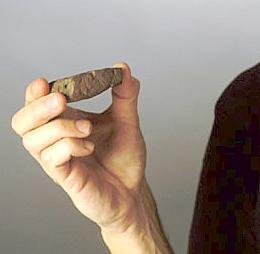 Последняя находка - два куска красной охры с выгравированными на них перекрещивающимися штрихами - были найдены среди других отложений, возраст которых оценивается в 77 тысяч лет. Они могут быть лучшими доказательствами того, что люди уже тогда обладали способностью к символическому выражению своих мыслей. Меньший кусок, длиной 53 миллиметра, украшен серией х-образных знаков, часть которых перечеркнута горизонтальной линией. Второй кусок, длиной 76 миллиметров, украшает множество х-образных узоров, перечеркнутых тремя горизонтальными линиями. Обугленные каменные инструменты, найденные в том же слое почвы, и песок в скрывавшей их дюне помогают определить возраст предметов.