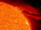 Извержение плазмы на поверхности Солнца во время «солнечного цунами» влечет за собой выделение потока ионизированных атомов, которые достигнут Земли в ночь на вторник или среду.