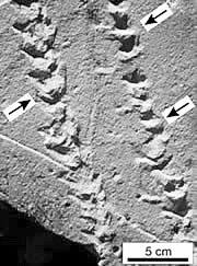 Это животное вполне могло быть представителем эутикарциноидов - родственников современных многоножек, по виду слегка напоминавших тощих мокриц. Это промежуточное звено между ракообразными и насекомыми, пояснил Брэдди. Учитывая возраст отпечатков и некоторые другие данные, представляется маловероятным, чтобы эти существа жили на суше. Однако не исключено, что они выходили на берег для спаривания и откладывания яиц. здесь же они могли искать пищу и спасаться от хищников. Но чтобы они не делали, они делали это вместе - группы следов имеют разную ширину.