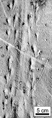 | • | Загадочные животные могли составить эти следы, выходя на сушу для откладки яиц |