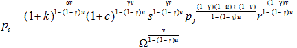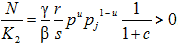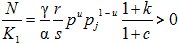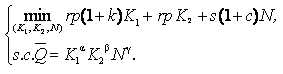 L(K 1 , K 2 , N, λ) = r p(1 + k)K 1 + r pK 2 + s(1 + c)N + λ(Ǭ – K α 1 K β 2 N γ ).