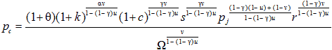 Зарплата равна потреблению в стоимостном выражении — объему потребления C, проиндексированному по цене продажи с учетом всех налогов (TTC), P = (1 + θ) р. В этой простой модели сбережения домохозяйств отсутствуют.