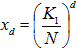 Ограничение — это желаемый объем производства Ǭ, который опирается на производственную функцию, обобщающую имеющиеся в расположении технологии. По сравнению с обычной функцией производства особенность здесь в получении общей добавленной стоимости при использовании трех видов вложений, так как запас капитала разделяется на два блока, оказывающих разное воздействие на внешнюю среду. Применяем функцию Кобба — Дугласа для выражения постоянной отдачи от масштаба: Q = K α 1 K β 2 N γ , где 0 < α < 1, 0 < β < 1, 0 < γ < 1, α + β + γ = 1.