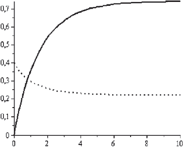 Для иллюстрации на рис. 1 и 2 показаны кривые для параметров, характерных для государства, функционирующего в условиях отсутствия налогообложения капитала и значимости социальных отчислений: