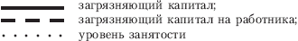 Рис. 2. Изменение объема загрязняющего капитала, загрязняющего капитала на работника и уровня занятости: