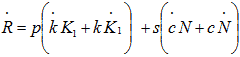 р Q = s(1 + c)N + pI 1 + pI 2 + pkK 1 .