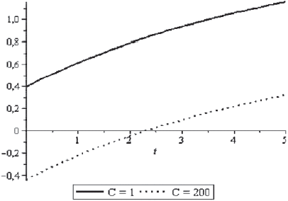 Этот эффект тем более заметен, чем выше коэффициент С, характеризующий выпуклость функции издержек. На графике (рис. 4), построенном на основе параметров из предыдущего раздела, кривая сальдо бюджета при C = 1 соответствует слабой выпуклости функции издержек приспособления, в то время как кривая при C = 200, характерная для очень высоких издержек, начинается с высокого дефицита, который затем постепенно переходит в профицит. В любой точке на графике изменение бюджетного сальдо благоприятно, и на самом деле ситуация еще более бы улучшилась, если бы строго учитывалось уменьшение затрат за счет уменьшения безработицы и общего улучшения системы здравоохранения.