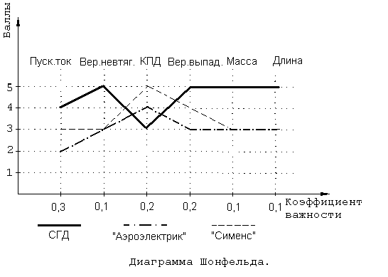 Чтобы определить уровень технического совершенства СГД проведем сравнение его технико-экономических показателей с показателями аналогичных двигателей выпускаемых фирмами-конкурентами. В качестве аналогов выберем СДПМ фирм “Аэроэлектрик” и “Сименс”, которые мы будем сравнивать с СГД по бально-индексному методу и методу Шонфельда.