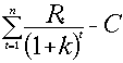 - чистый денежный поток в год t, n- время существования проекта, k- стоимость капитала проекта, С- первоначальные затраты проекта.
