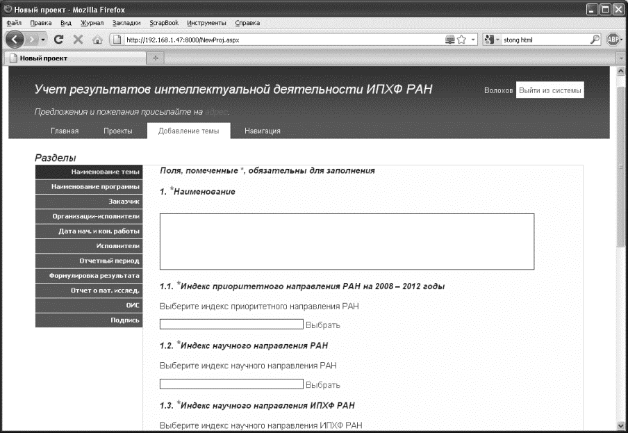Информационно-аналитическая система учета результатов интеллектуальной деятельностив научной огранизации