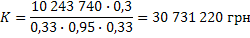 П0 = QРП - СРП = 9 390 369 – 8 779 652,3 – 26 000 = 584 734,6 грн