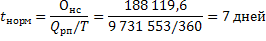 Для того, чтобы узнать, нужно ли ложить деньги в кассу для выплаты аванса либо ЗП рабочим, рассчитаем норму оборачиваемости нормируемых средств в днях: