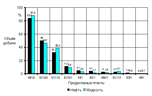 Рис. 3 - Обводненность пластов Ватьеганского и Южно-Ягунского месторождений