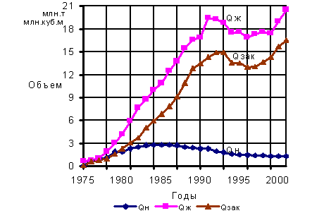 Рис. 2 - Отношение дебитов пластов к общему объему добычи