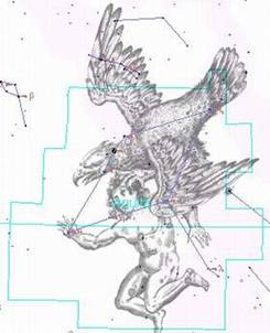 В созвездии Орла есть несколько слабых по блеску двойных звезд (например, звезда h). но после достопримечательностей созвездия Лебедя они особого интереса не представляют.
