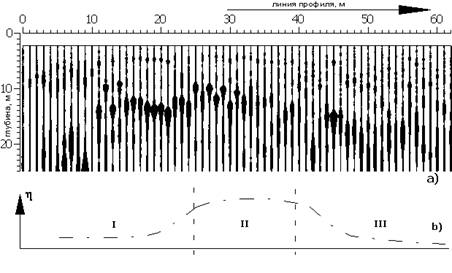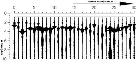 На рис.4 показан ССП-разрез, полученный по одному из профилей, пройденных в подвале.