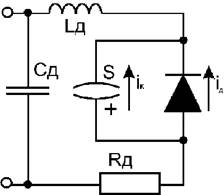 Эквивалентная схема инерционного диода состоит из безынерционного диода, включенного параллельно с накопителем положительного заряда S, сопротивления базы диода Rд, индуктивности диода (индуктивность контактной пружины) Lд и емкости корпуса диода Cд.