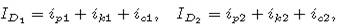 ID1 - ток диода D1; ID2 - ток диода D2.