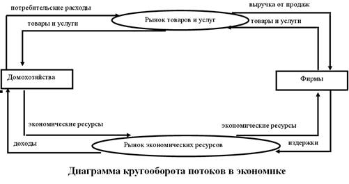 Сначала рассмотрим двухсекторную модель экономики, состоящую только из двух макроэкономических агентов – домохозяйств и фирм - и двух рынков – рынка товаров и услуг и рынка экономических ресурсов (рис 1).