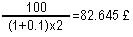 Пример условного расчета по данному варианту. Если компания получает 10% отдачи от инвестиций, то будет небезразлично, получит ли она 100 Ј сразу, либо 110 Ј спустя год, либо 121 Ј, - через два года. Но 100 Ј, полученных за два года, с учетом фактора дисконтированной стоимости составляет только 82.645 Ј. Это видно из примерного расчета: