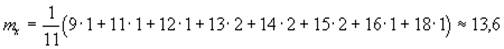 Например, группу из n=11 учащихся опросили и получили следующее число правильных ответов: