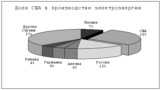 Очень быстро растет производство электроэнергии. В настоящее время США является лидером в этой отрасли.
