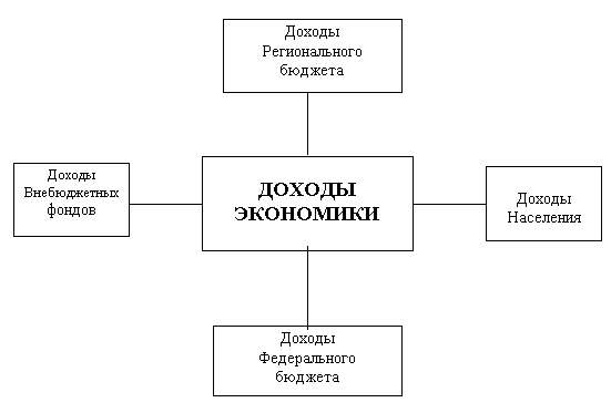 Кредитно-финансовая ситуация как в стране, так и в регионах определяется уровнем экономического развития производителей, так как из доходов производителей формируется федеральный и региональный бюджеты, внебюджетные фонды и доходы населения. Это можно представить в виде следующей схемы:
